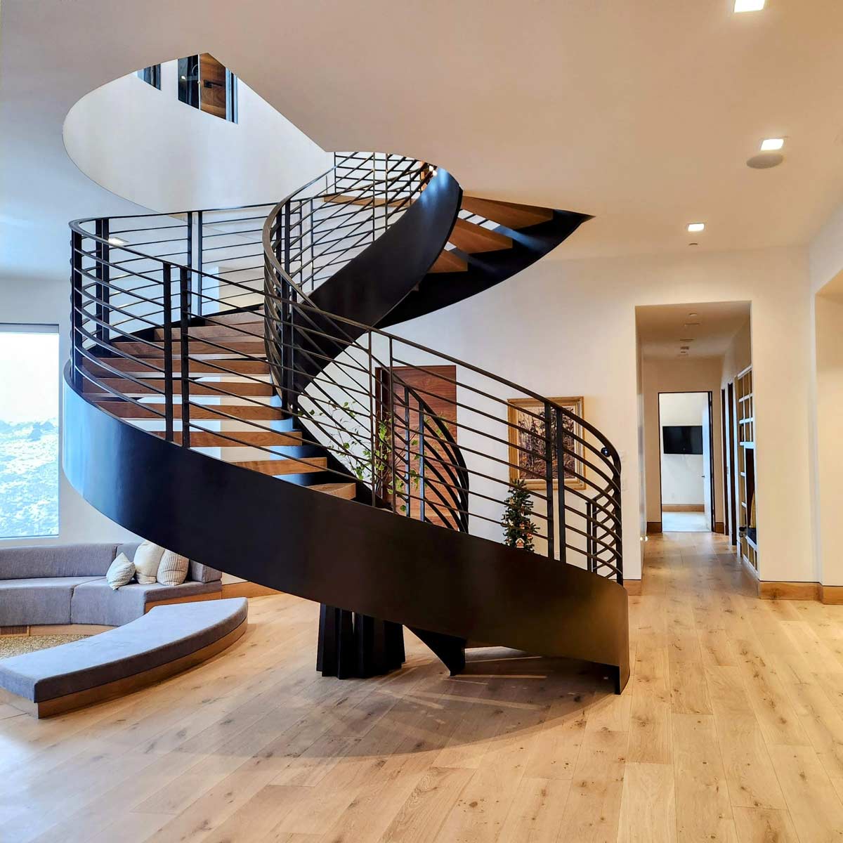 Overlooking the Red Ledges community in Heber City, Utah, this freestanding contemporary steel and Euro-White Oak circular staircase makes for an elegant centerpiece in this beautiful mountain home