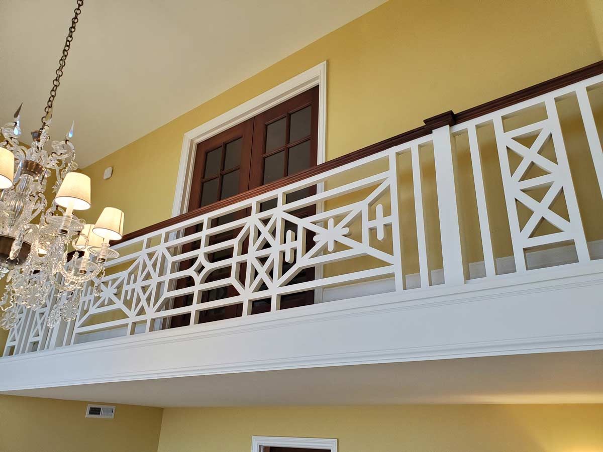 Overlooking down town Salt Lake City this highrise penthouse owner requested a unique guardrail grid pattern to overlook this social gathering place. Shown here finished with a Walnut top rail.
